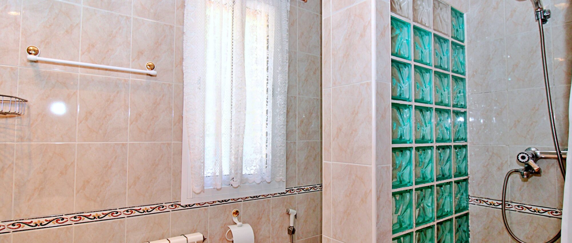 The villa, built by the current owner, offers plenty of potential for modernization and boasts, an entrance hall, a large living and dining room, a large fully fitted kitchen, the master bedroom en-suite, 2 bedrooms, of which one has built-in wardrobes, the 3rd bedroom would be ideal as an office, a 2nd bathroom, access to a storage room and the garage. From the kitchen, there is access to the covered patio with BBQ and outdoor kitchen, another storage room, and a wide-covered terrace.