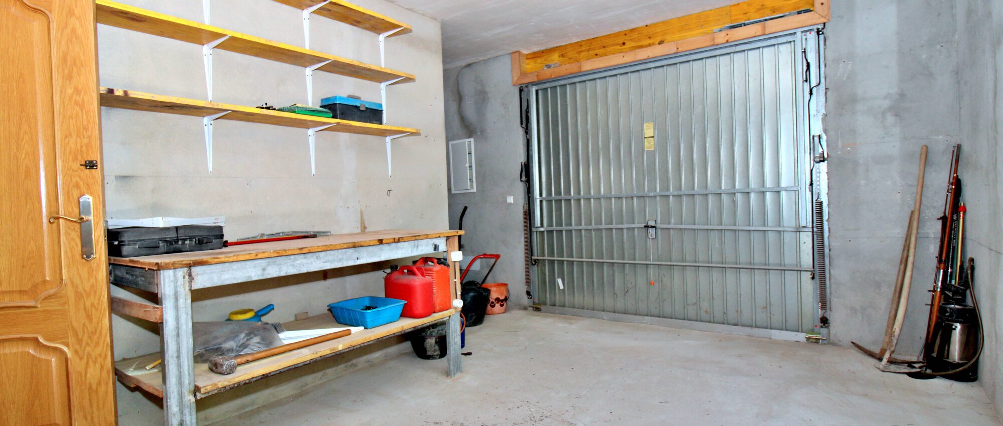 On the first floor, there is a separate apartment, with 1 bedroom, with built-in cupboards, a bathroom, and a living space with a kitchenette. Besides the garage, there is a covered carport for 1 car, and still space for another 2-3 cars inside the property.