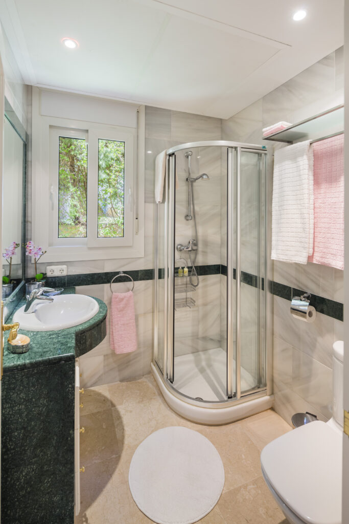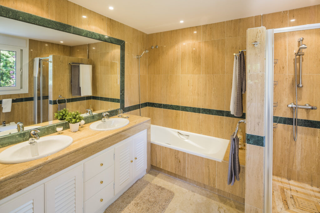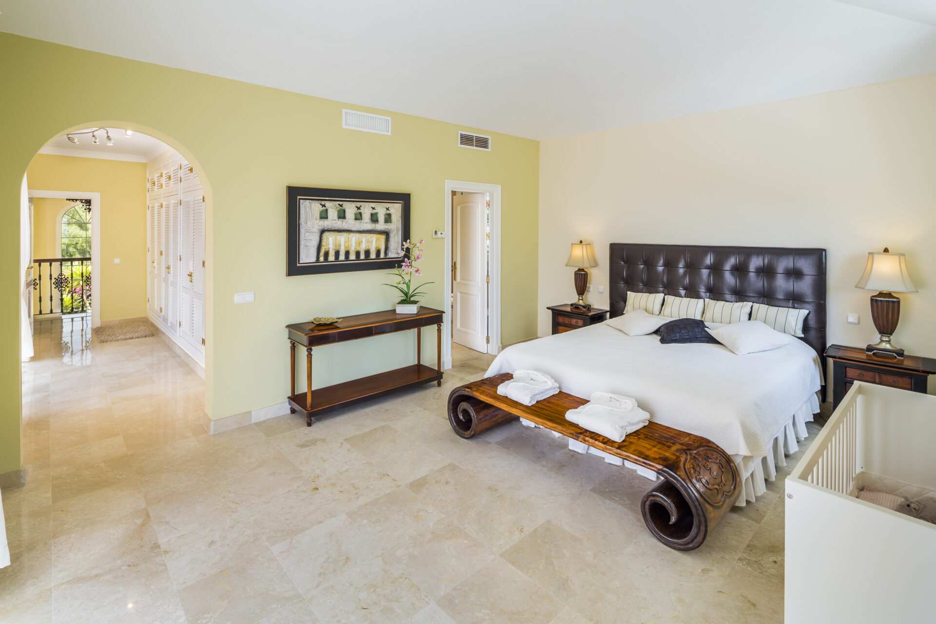The location is a key highlight: a lit pedestrian route connects the villa to Elviria’s commercial centre, beaches, restaurants, supermarkets, international schools, and Santa María Golf Club, with Marbella town centre just a short drive away.