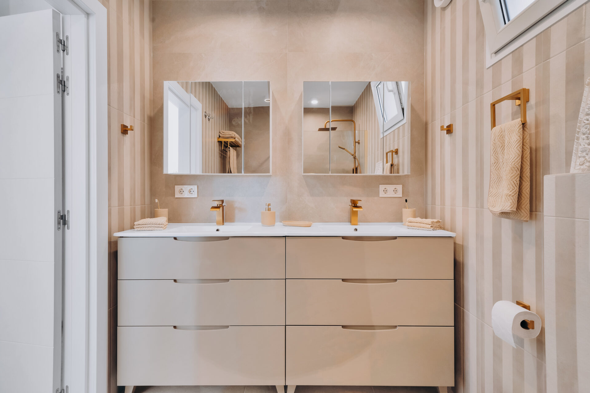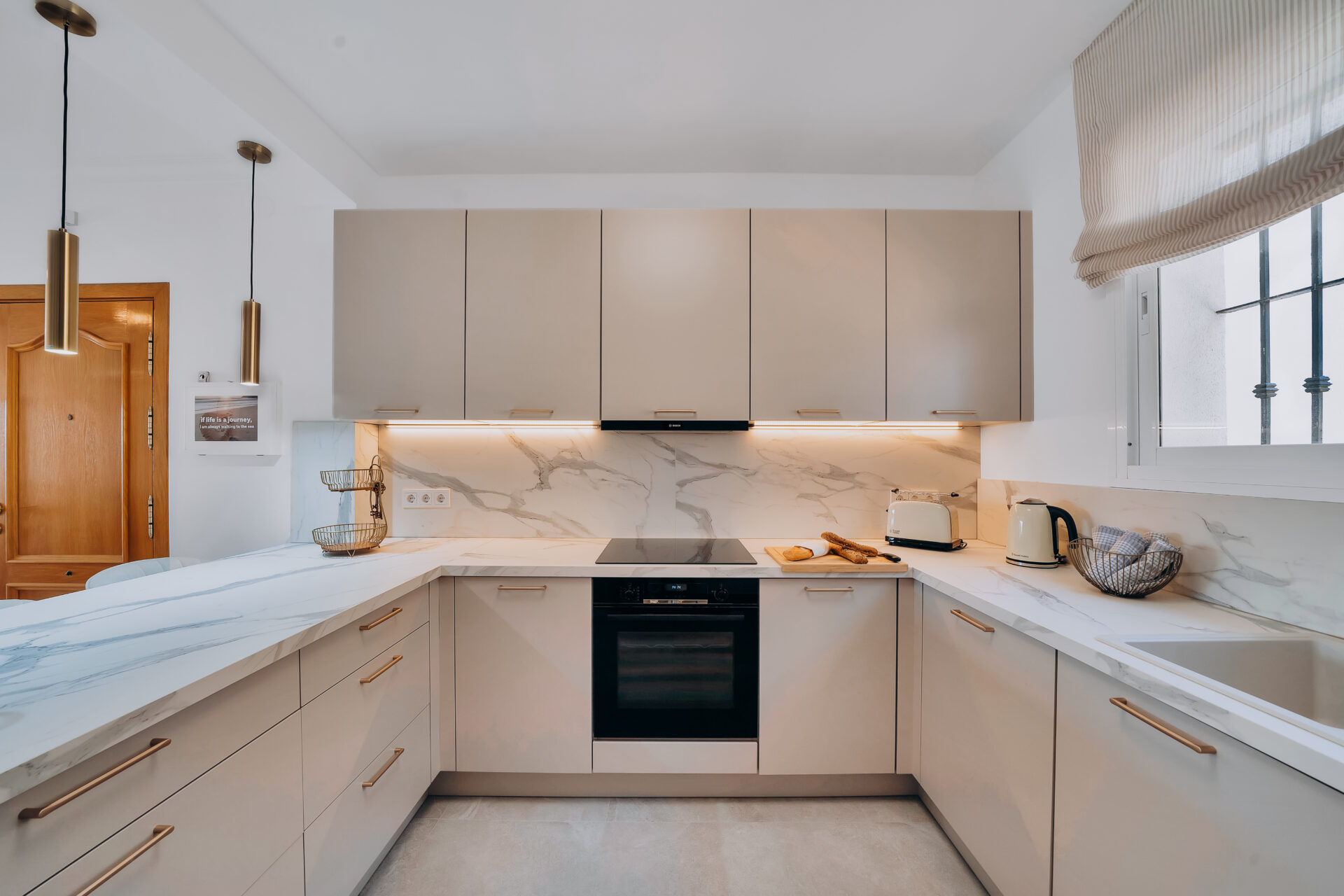 This beautiful 3-bedroom, 2-bathroom apartment has been completely renovated this year to a very high standard. It features a custom-made kitchen by a German carpenter, equipped with Bosch appliances, new air conditioning units, stylish fitted wardrobes, and two elegant bathrooms with walk-in showers.
